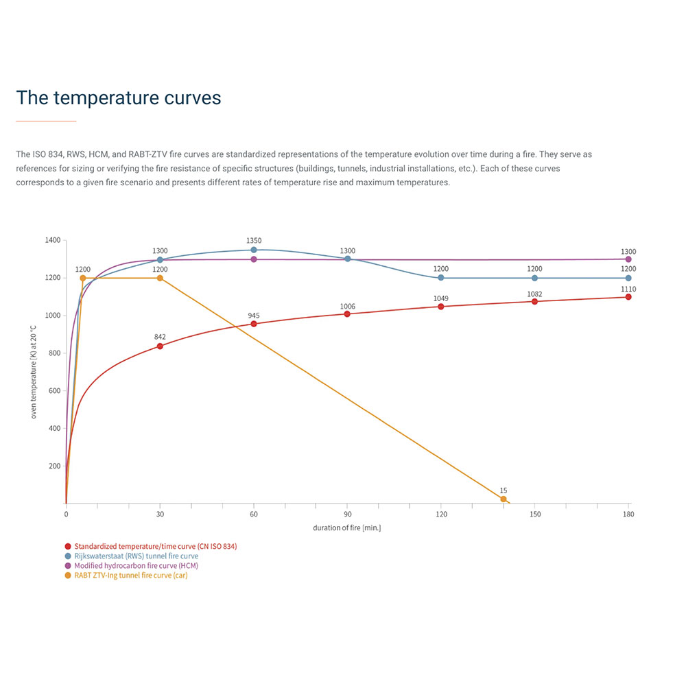 Rijkswaterstaat RWS, Hydrocarbon HC, EBA, RABT/ZTV tunelska krivulja – čime je potvrđena njegova otpornost i u ekstremnim uvjetima poput požara u tunelima.